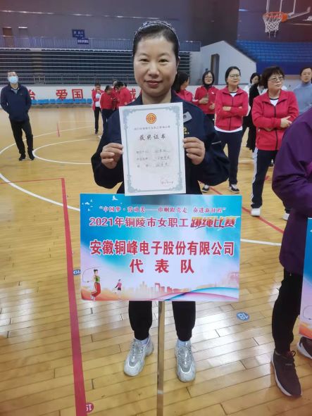 全市女職工跳繩比賽由市總工會(huì)主辦,共有全市工會(huì)系統(tǒng)35個(gè)單位組隊(duì)參賽,222名女職工、22支隊(duì)伍分別報(bào)名參加單人項(xiàng)目和集體項(xiàng)目比賽。公司工會(huì)選派了2名優(yōu)秀女職工選手參加了單人項(xiàng)目。經(jīng)過(guò)參賽選手奮勇拼搏,最終電容器分公司孫艷紅以一分鐘單搖201個(gè)的好成績(jī)?cè)谌?22名參賽選手中排名第11名,榮獲“優(yōu)秀獎(jiǎng)”。